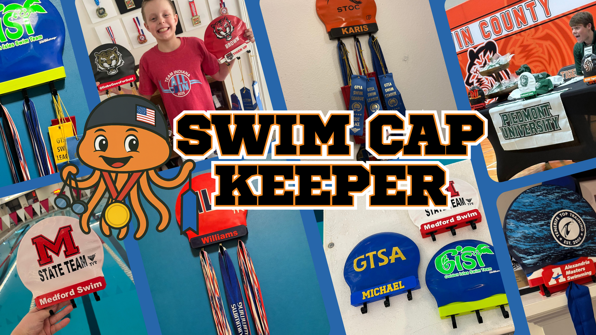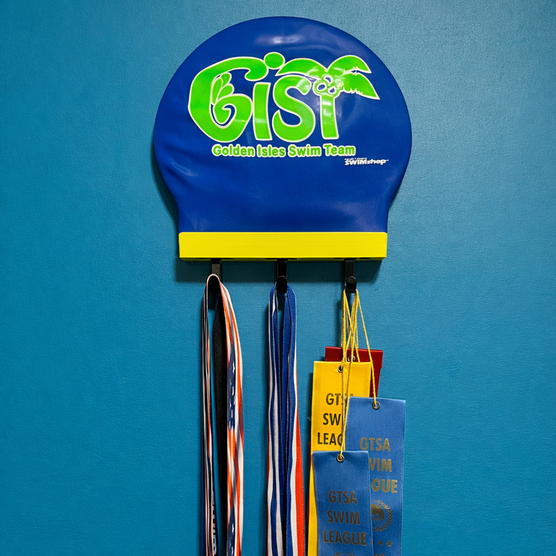 Swim Cap Keeper helps organize and showcase those hard-earned moments.